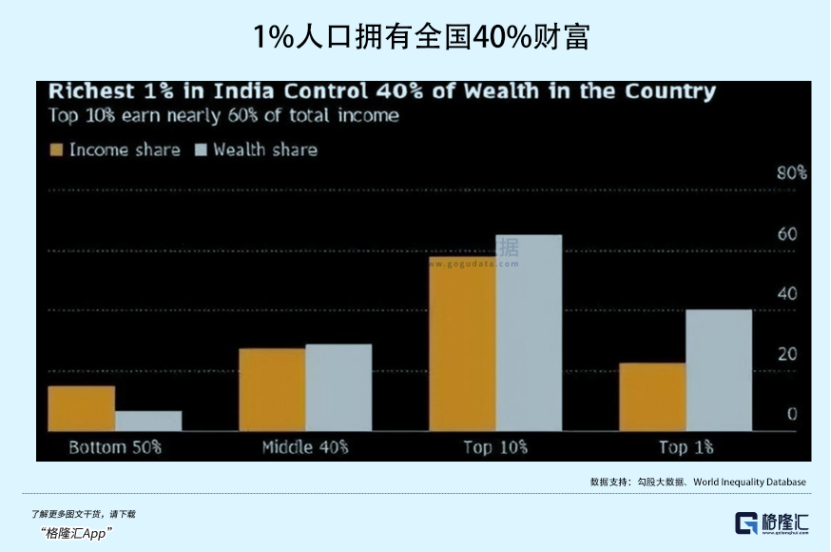 30年代,作为日不落帝国的一份子,印度地区最富有的1%人口,收入占比是20%。