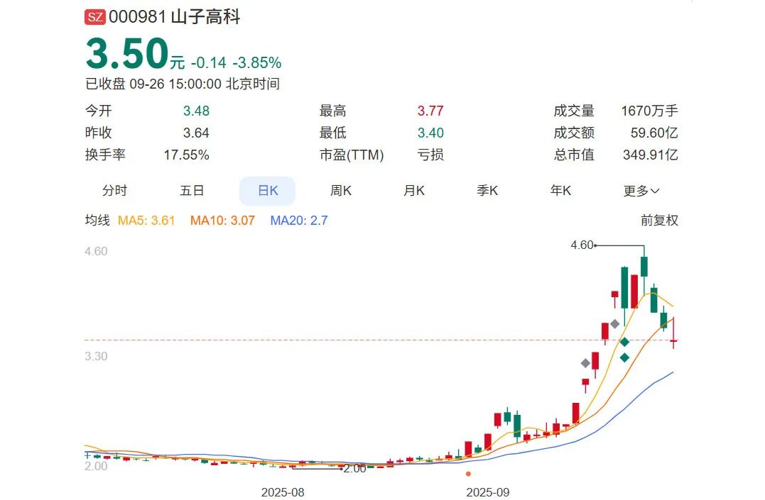 此举点燃投资者热情,截至26日收盘,山子高科市值,飙至350亿元,较月初上涨60%。