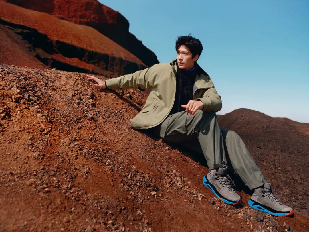 代言大片中,井柏然身着其王牌鞋款KAHA 3 GTX徒步鞋及动态硬壳冲锋衣,在火山、碎石等复杂地形中展现产品性能,传递“城野皆自在”的主张。