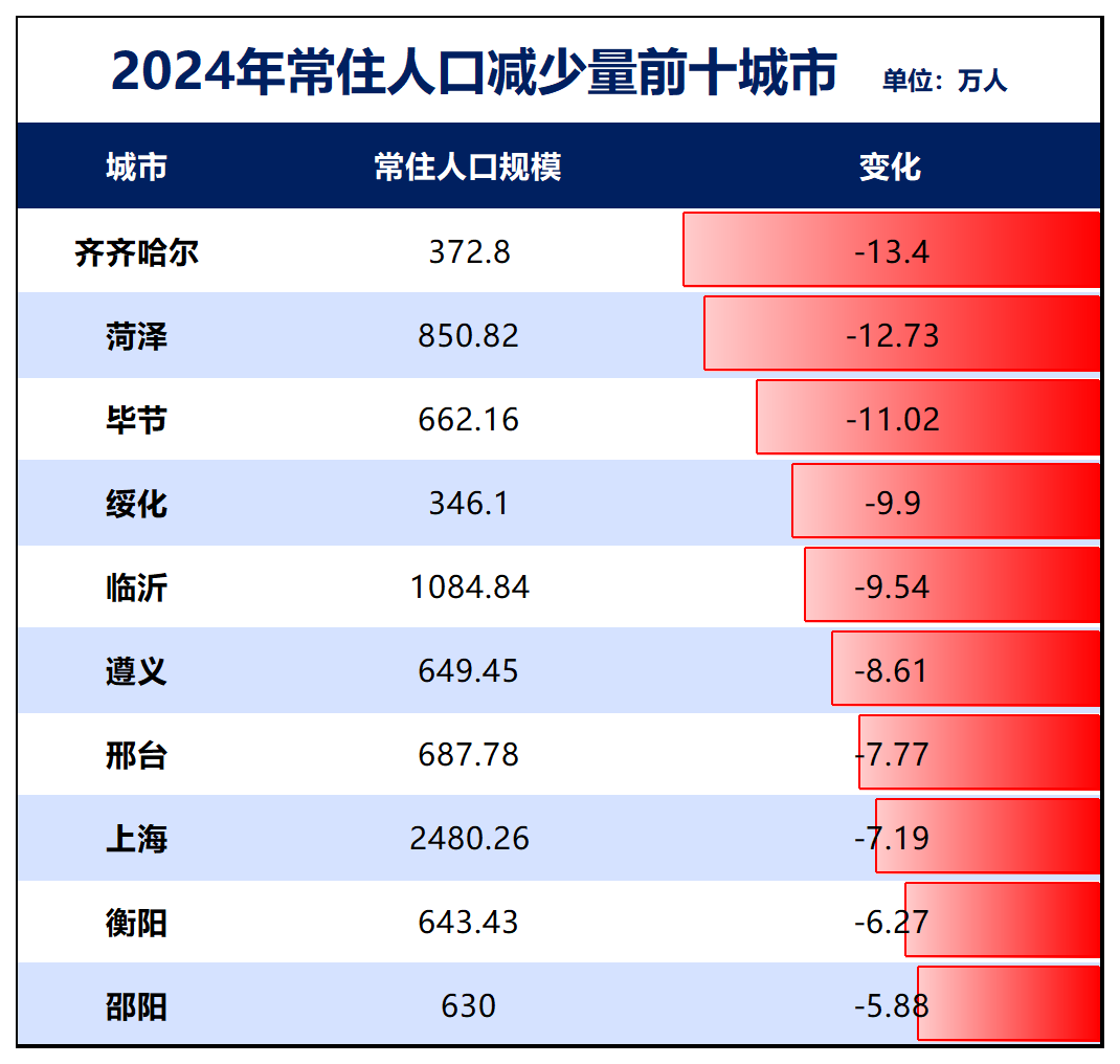 第三,2024年人口减少最多的10个城市,湖南占了两个。