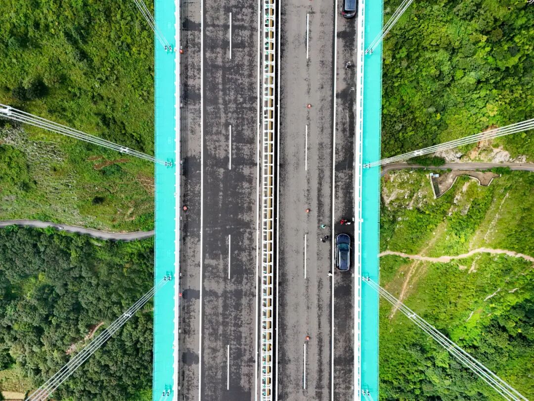 花江峡谷大桥,也是全球首创采用“上下水平稳定板+中央稳定板”抗风措施,并巧妙地将下稳定板设计为空中竞速跑道,实现了结构安全与功能创新的完美统一。