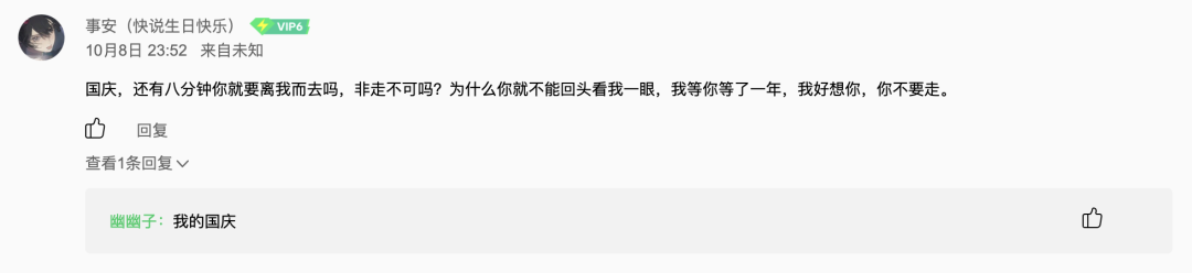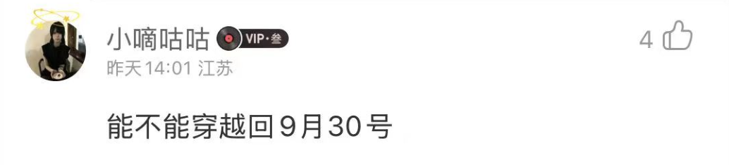 这起源于互联网坊间的一个古老传言——听100次《反方向的钟》,时间就会倒流。大家在评论区虔诚许下一个共同的愿望:回到国庆前一天。