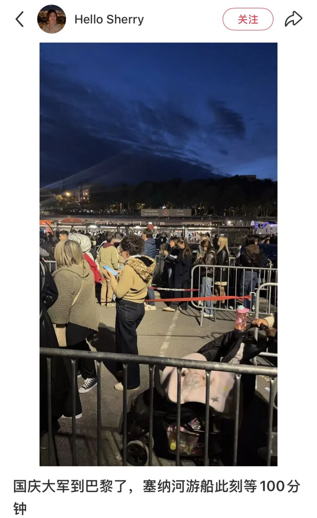 国庆大军也冲向了巴黎,平时不排队的塞纳河游船要等100分钟。