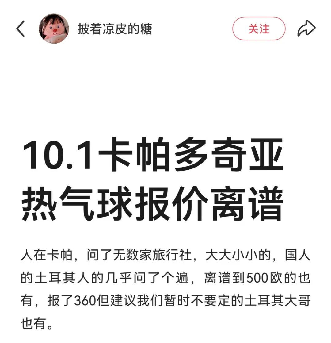 热气球也会涨价,卡帕多奇亚热气球9月的价格是100-200欧,在国庆期间要300欧-500欧。