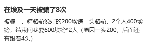有人总结自己在埃及被骗的经历,林林总总凑出来快二十条,当当不一样。