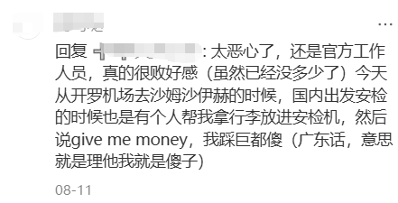 而很多人的烦躁在于,明明自己是带着善意的预期来的,却被这种低劣的骗局消耗了情绪,好像自己只是埃及人眼里行走的钱包。