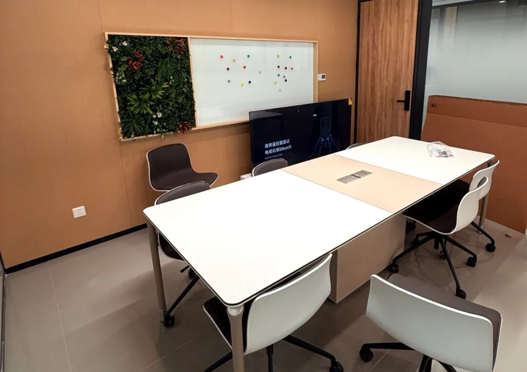 这里是空间的活力核心。智能会议室配备高清电视和白板,支持线下、线上不同规模会议。