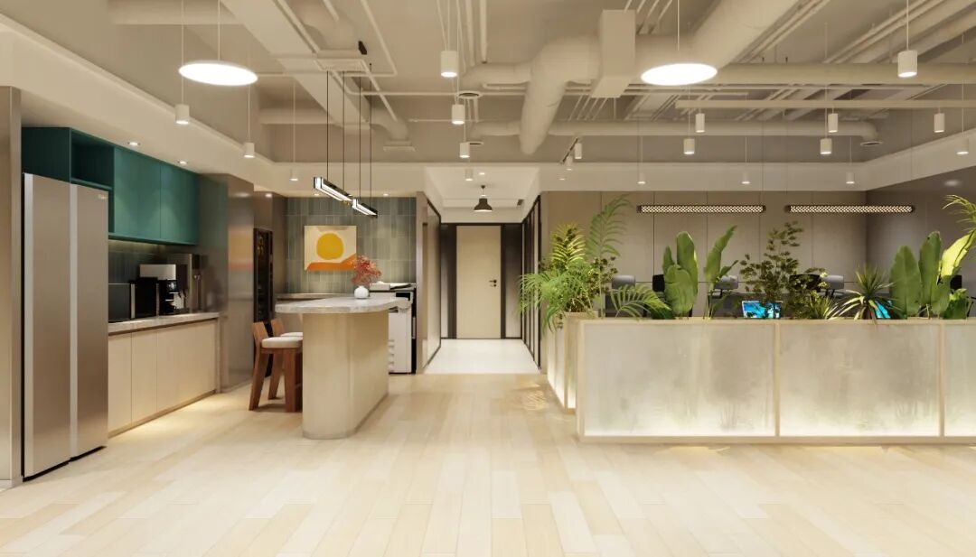 设置休闲区、洽谈区、茶水间与吧台,提升办公舒适度