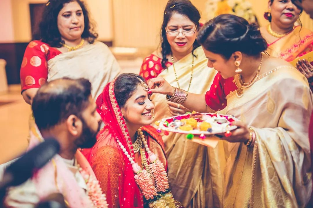在印度的婚俗中,双方家庭又会给新娘大量黄金饰品作为礼物,因为在过去,家庭中的土地、房屋都归儿子所有,女儿一般不分家产,只有这部分金饰品是属于女性个人的嫁妆,也是伴随其一生的婚姻保险,丈夫无权支配。所以,很多印度家庭是从姑娘刚出生起,便开始一点点攒黄金,就是为未来结婚做准备。