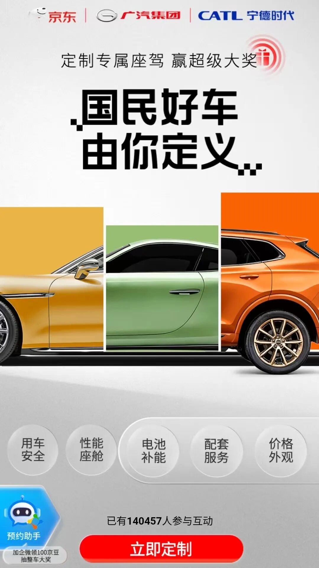 10月14日举办的京东11.11惊喜开放日活动上,京东汽车宣布联合广汽、宁德时代将推出一款汽车,官方将在10月底陆续开启内测版、大众版试驾活动,11月9日新车正式官宣发布。