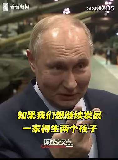 普京到各地视察工作,碰到年轻人便频频催生,他表示,俄罗斯民族要生存下去,每家必须至少有两个孩子。为了扩大和发展,则至少需要三个孩子。