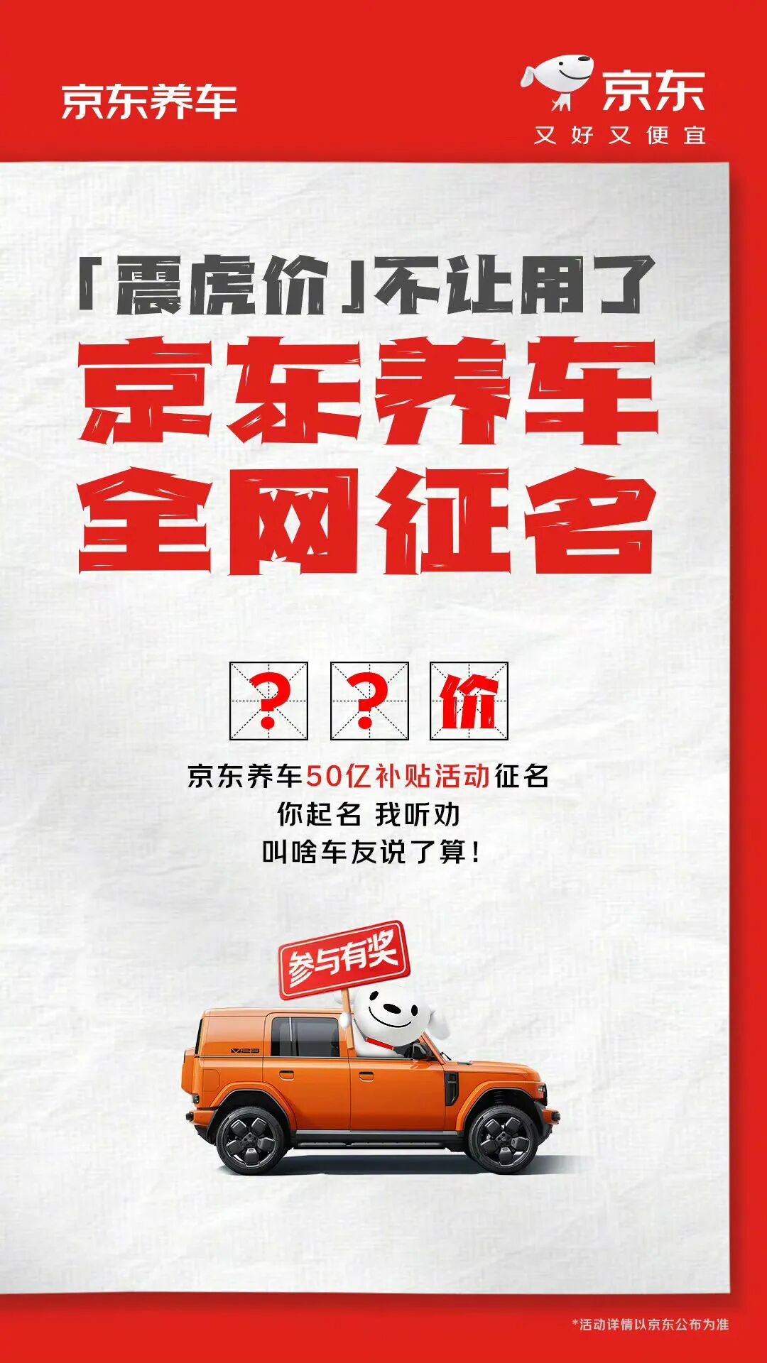 京东虽败诉,却在道歉微博下顺势推出“50亿养车补贴”,甚至公开征集新名字,网友评论区直接变成了免费营销场。