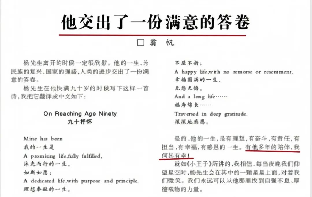 互联网上,还有人在争论杨先生是爱发妻杜致礼多一些,还是爱后妻翁帆多一些。