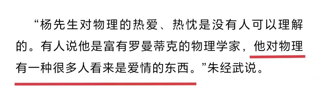另一句话,是《中国青年报》采访物理学家朱经武时,朱先生如是评价杨先生: