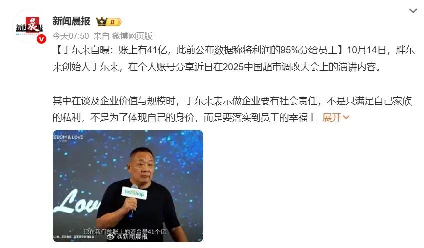 2025年,胖东来相继推出的几项政策,几乎都被放大解读。例如那条“员工结婚执行标准”——禁止收取或支付彩礼、不允许靠父母买房买车。有人称之为推动社会风气的进步,也有人质疑企业干涉私人生活。又比如今年8月,胖东来宣布招收刑满释放人员,并由创始人于东来亲自面试。他对现场的应聘者说:“不要自卑,每个人都犯过错。”这本是一句温情的话,却被部分舆论解读为“作秀”“打感情牌”。当善意的举动被流量裹挟,外界的评价不再基于事情本身,而是基于“期待”。公众希望看到一个完美的胖东来,既要有温度,又要有规则;既要人性化,又要标准化;既要善良,又要高效。但现实里,任何企业都无法在这三者之间找到绝对的平衡。10月8日,根据胖东来公布的销售数据,截至当月累计销售约8.2亿元,国庆期间日销售额突破1亿元,其中线上商城销售额为3391.82万元。另外,2025年全年销售额预计超184亿,账上现金储备41亿。一家没有资本杠杆、没有融资、甚至没有外部投资的企业,凭借口碑和服务做到这一切,本身就堪称奇迹。他们的利润分配制度更是近乎理想主义:30%用于成本,30%分给员工,30%做慈善。