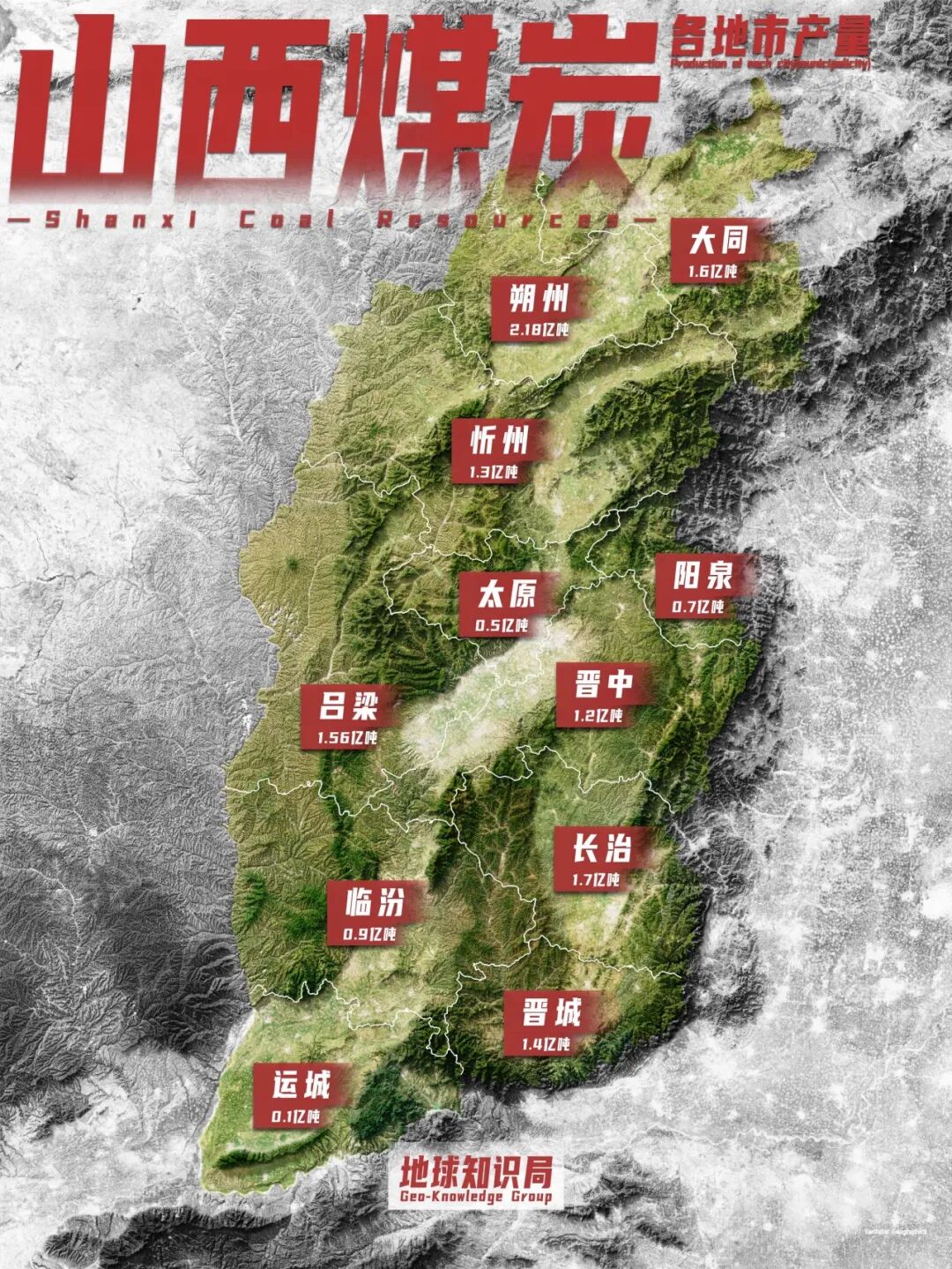 山西一省十一市,每一个都在大量产煤,有7个产煤过亿,其中朔州过2亿吨。就连看起来主要负责花钱的省会太原,每年也能挖出半亿吨煤,跟甘肃这种采矿大省差不多。一市顶一省,也是非常硬核了。