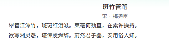 换用诗名《斑竹管笔》进行检索,只能找到宋朝诗人梅尧臣的一首五言律诗。