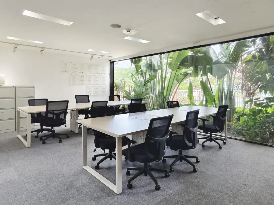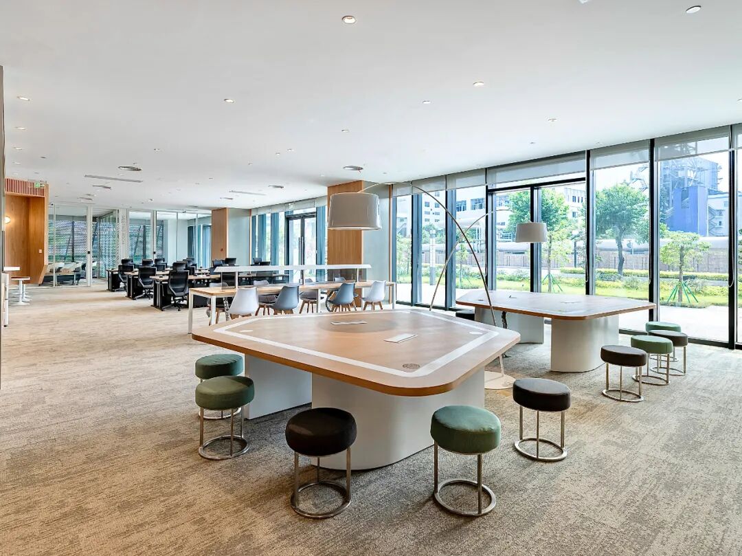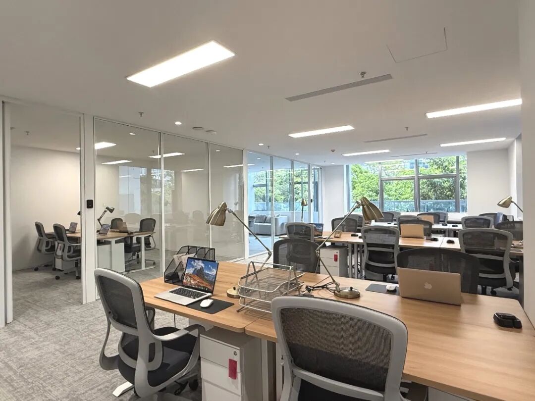 位于园区中心位置,成熟配套环伺助力高效商务办公;一楼黄金楼层享4.5米奢阔挑高与全景落地窗,采光优良且视野开阔;100㎡精致空间适配10人团队,科学布局兼具企业形象门户与高效协作功能。