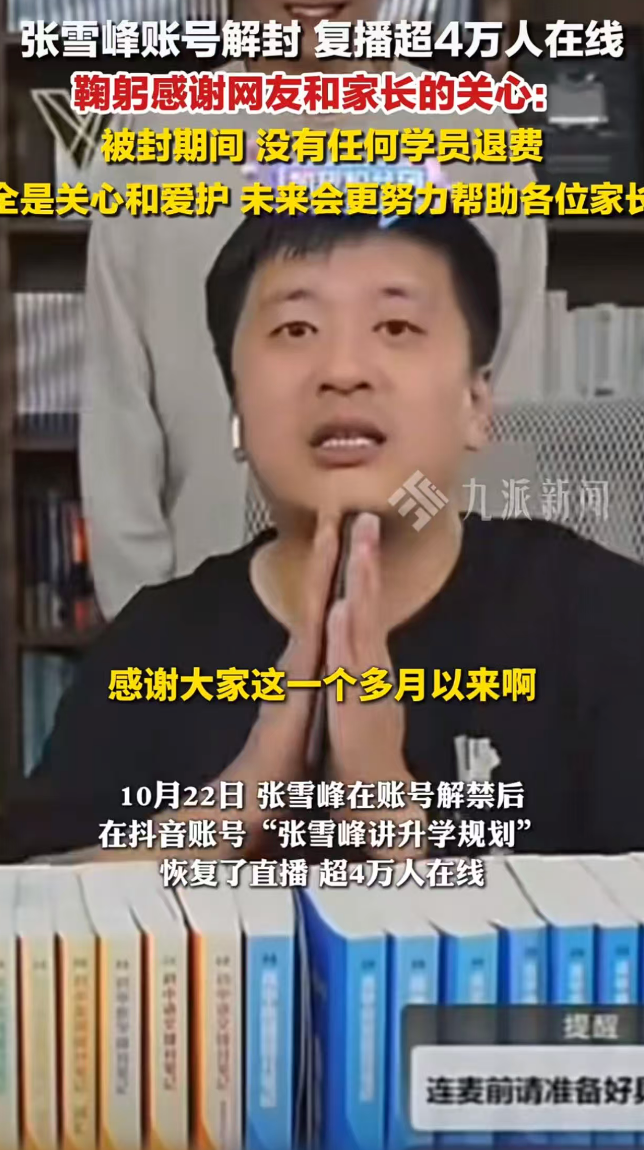 据悉,张雪峰团队当时回应称因直播言论违规被举报,正在整改。
