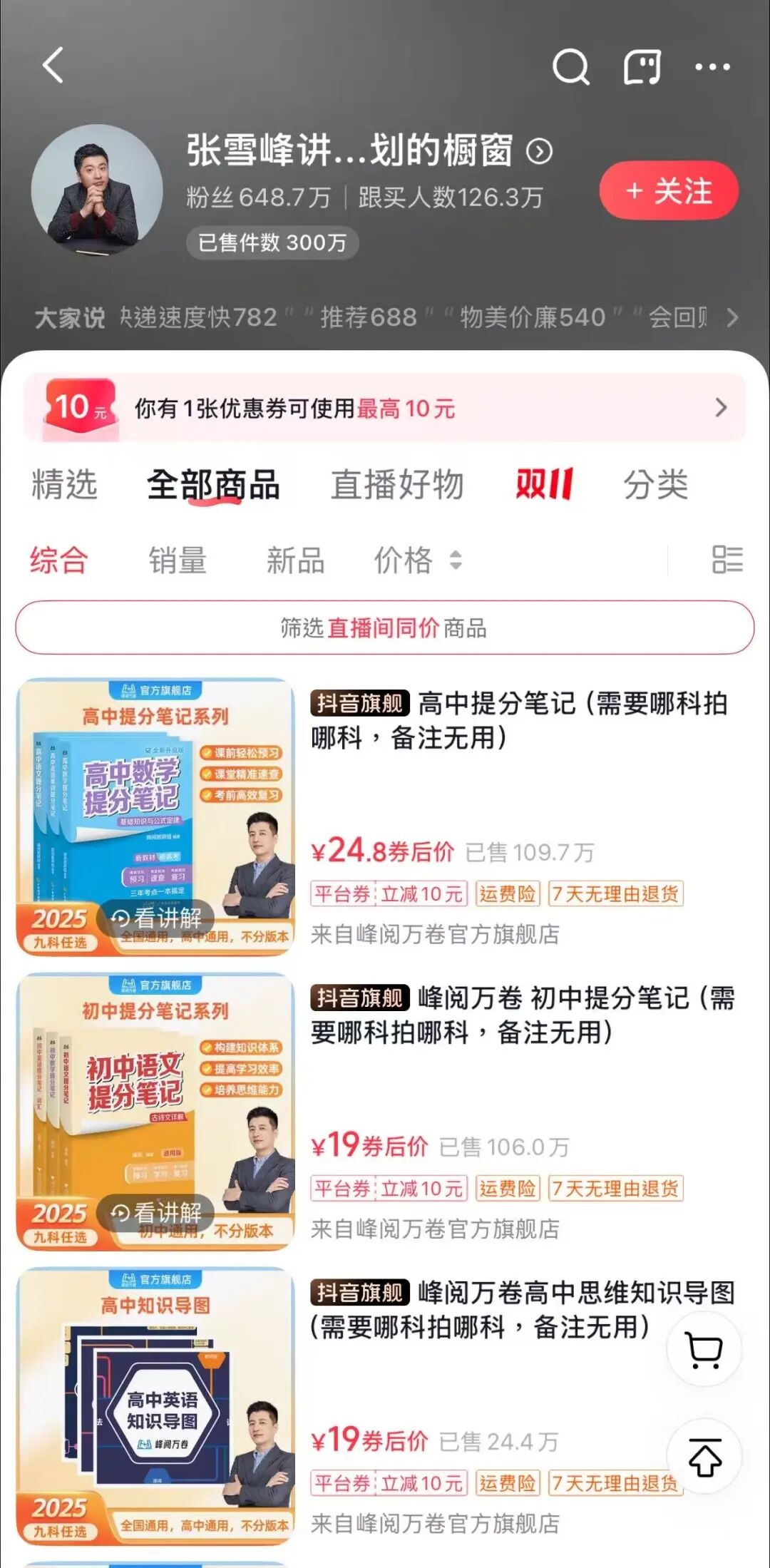 只是,这次直播与以往不同,桌上摆满了笔记书、提分资料,但他特意强调: