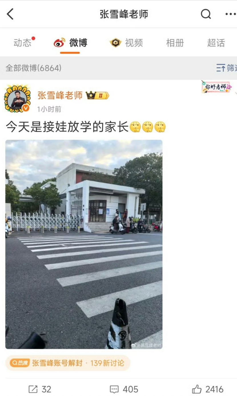当张雪峰在微博写下“今天是接娃放学的家长”时,那句看似平淡的自嘲,恰好道出了他的处境。