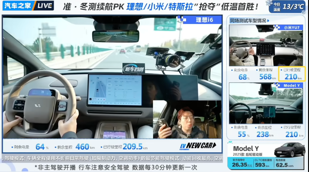 理想i6主打家用平衡,特斯拉Model Y以能耗低闻名,而YU7凭借大电池和稳定的能控系统最终取胜。