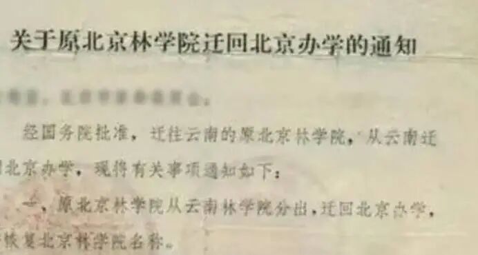 国家林业总局收到国务院明确批示后,迅速发出《关于恢复北京林学院并迁回北京办学的通知》。