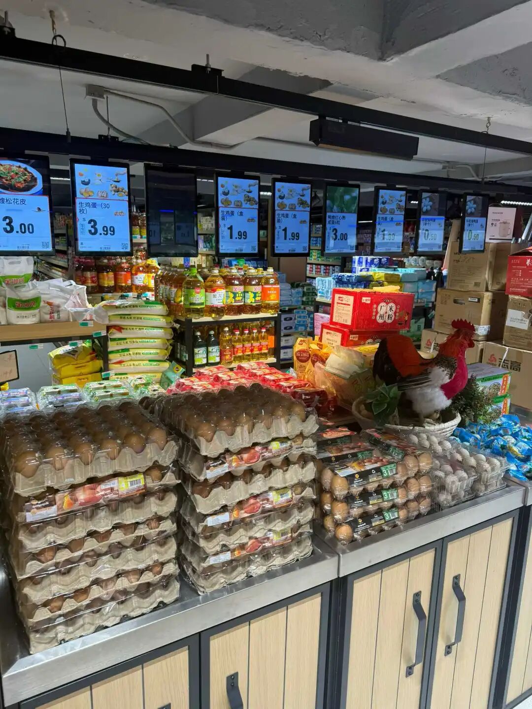 不过,李明达并没有仔细想象过牙买加的生活。彼时他刚离开校园,对新的生活并不满意,迷茫感日益增长。“不如出去闯一闯吧。”他主动联系了在滨海萨凡纳开超市的家人。比起未知的未来,当下一成不变、令人生厌的环境更为可怕。人的迁徙并非全为了寻找更优的资源,有时,只是为了解决当下的困境。怀着这样想法的人,并非只有李明达一个。做出在柬埔寨开超市的决定,小猪只用了两周。他对开店的时间节点倒背如流:2019年10月29日,他从浙江老家动身,去金边考察,11月15号便接手了一家超市,并付下盘店钱。11月16号,他已经站在收银台后开始结账了。这种果断并非源于冲动。去柬埔寨之前,小猪在国内开过室内设计公司,但收支只能勉强打平,直白一点说,“投入了精力、时间,但没有任何回报”。出于好心,小猪还担保过朋友的欠款,对方没能还上钱,在已有的房贷、车贷基础上,他的债务又叠加了几十万,“已经有点走投无路了”。在柬埔寨开超市成了小猪的人生拐点。六年时间里,小猪将超市从最初的两间店面扩成了五间,多出来的三间门店,是收购隔壁超市得来的。● 小猪超市的食品区,与国内超市布局风格相似。图源:小猪