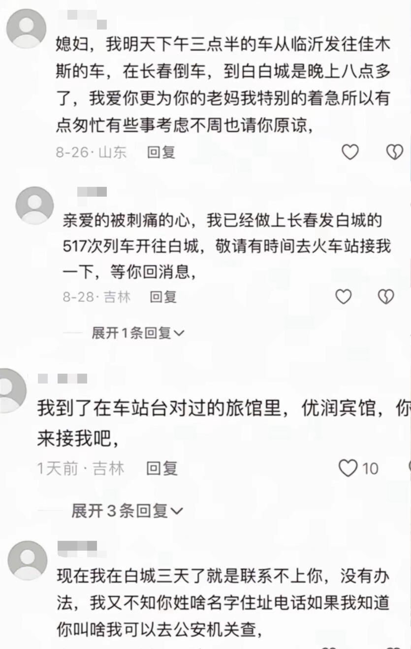 先是一个山东临沂大爷,只身一人坐火车抵达吉林白城,在火车站对面的“优润宾馆”苦等3天,始终没见到想见的人;