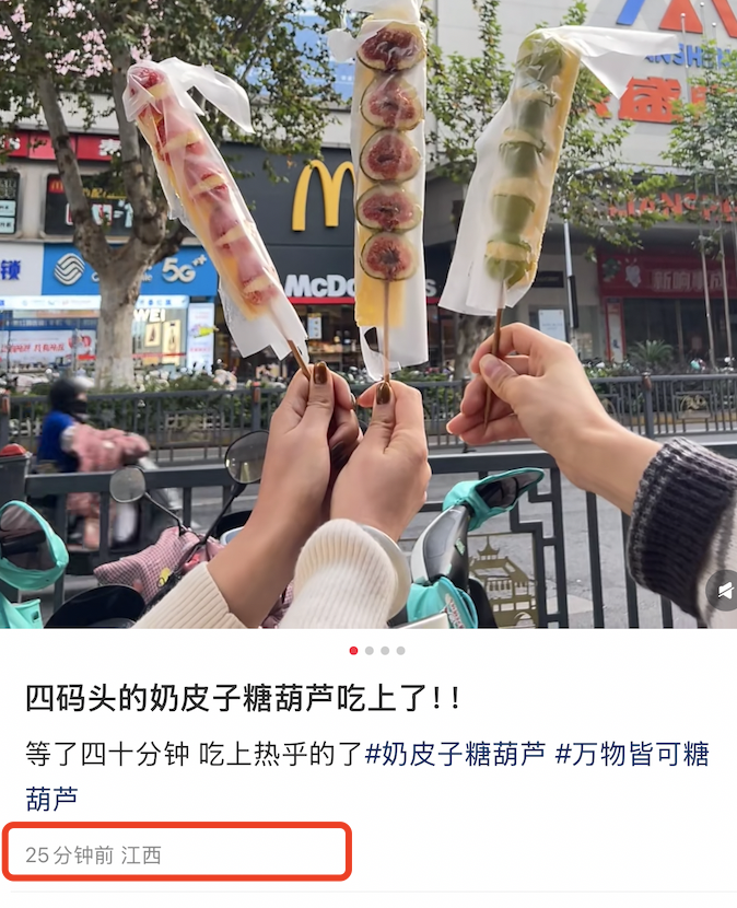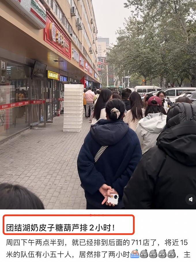很快上海、杭州、江西也陆续出现“奶皮子糖葫芦排队实况转播”。