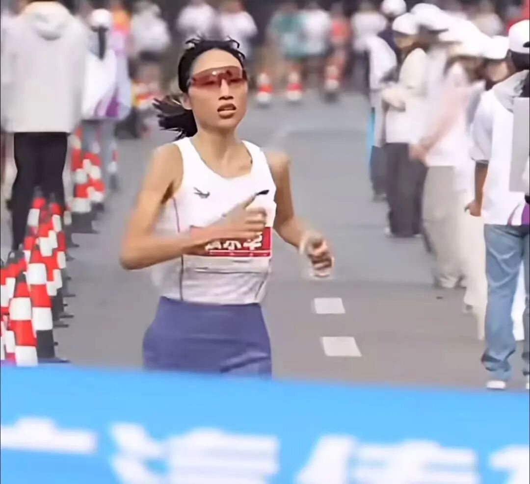 那一场她以2小时35分27秒的成绩获得国内女子组第一,她说自己生理期仍坚持完赛,裤子被血浸透,却依然冲向终点。