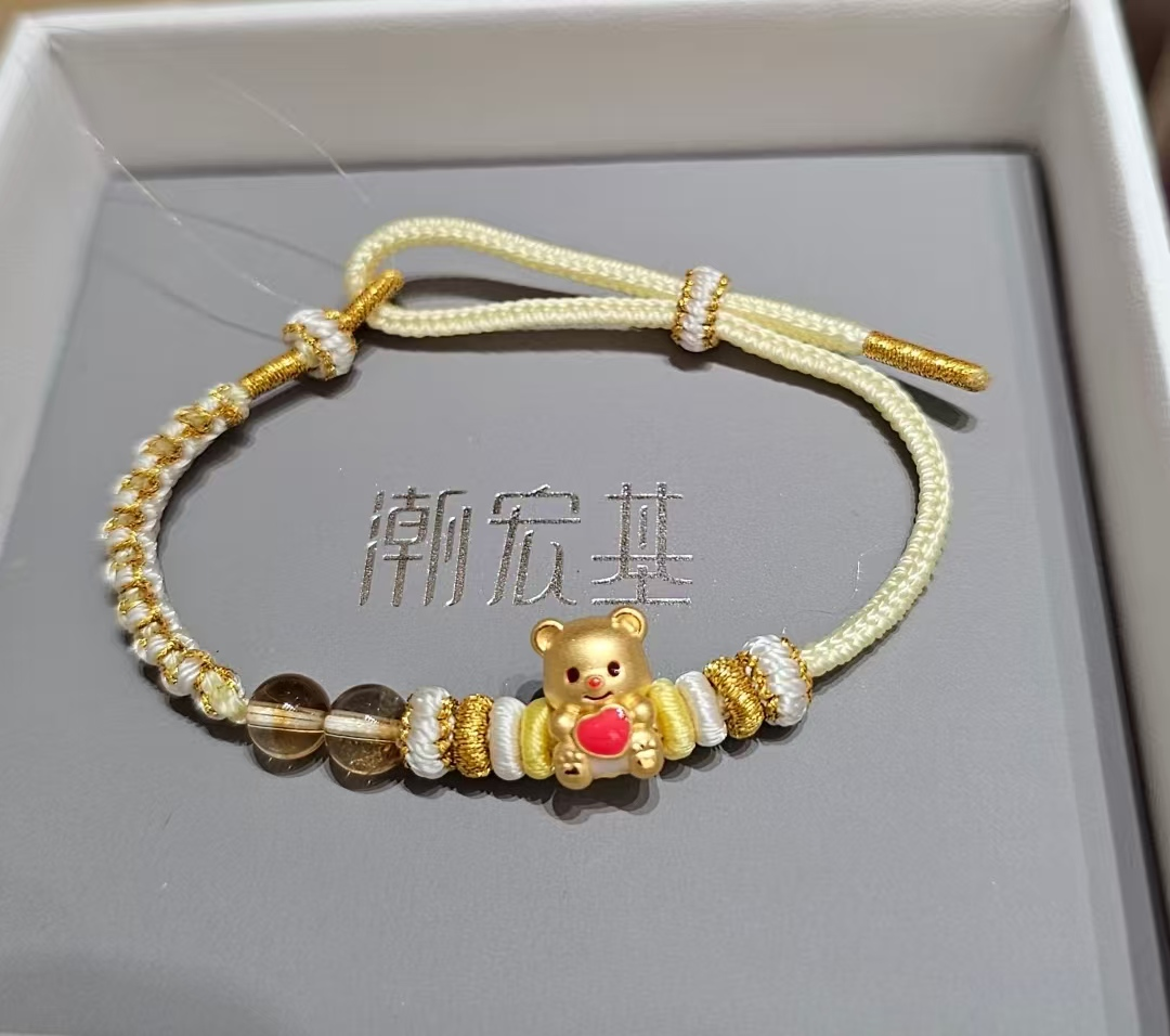 潮宏基的黄油小熊挂件售价280元,看起来价格友好,但要知道,其中仅含0.1克黄金;小金毛吊坠,含金0.7克,淘宝一口价2679元;1.15克的库洛米转运珠,特价后仍高达2188元,总之无不是远超品牌金价。