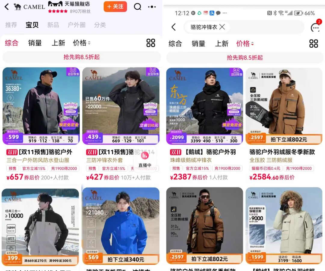 10月20日晚,天猫双十一正式开卖30分钟内,骆驼的销售额迅速破亿。