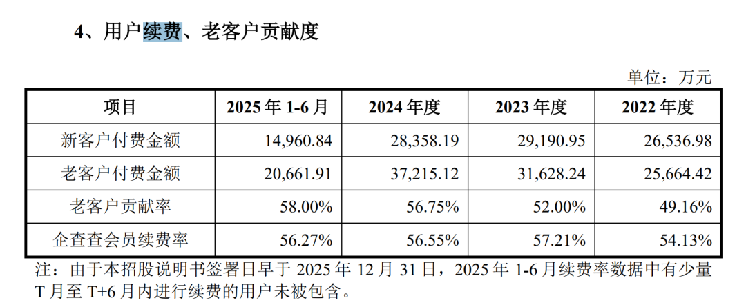 用户续费与老客户贡献度情况/图源:企查查招股书