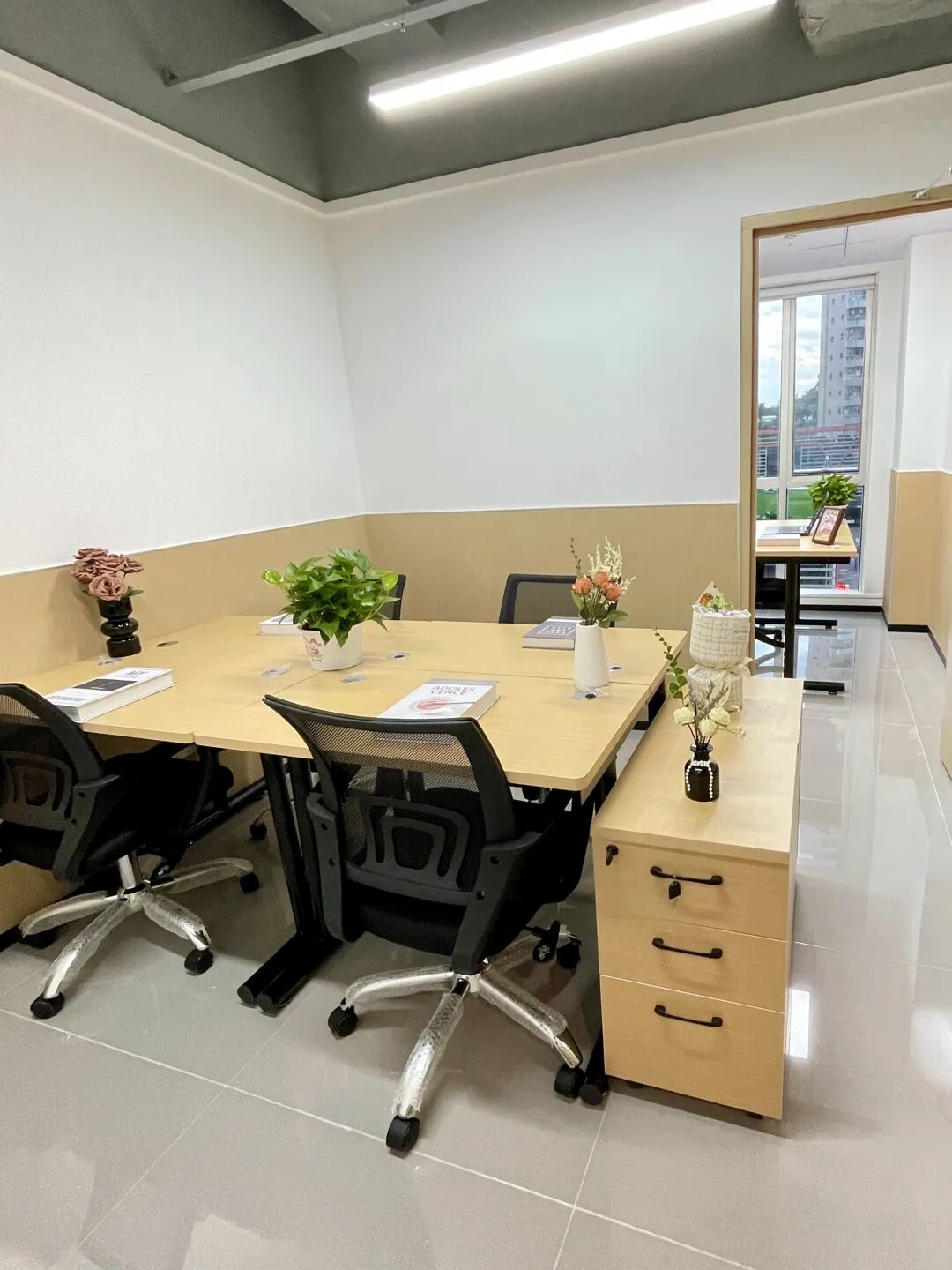 独立办公室:提供1-10人间多种规格,每间均配备办公家具、智能门禁及商务座机,充分保障工作专注度与舒适性。