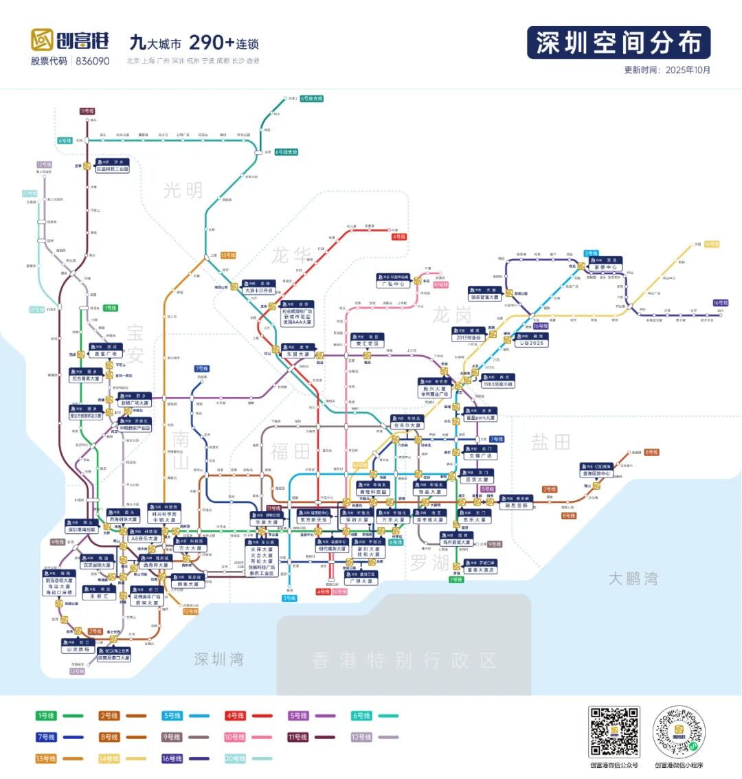 创富港在全国9大城市(深圳、广州、北京、上海、杭州、成都、长沙、宁波、香港)设立超290个服务点的庞大网络,让企业无论拓展至何地,都能享受统一标准的高性价比办公体验与本地化支持。