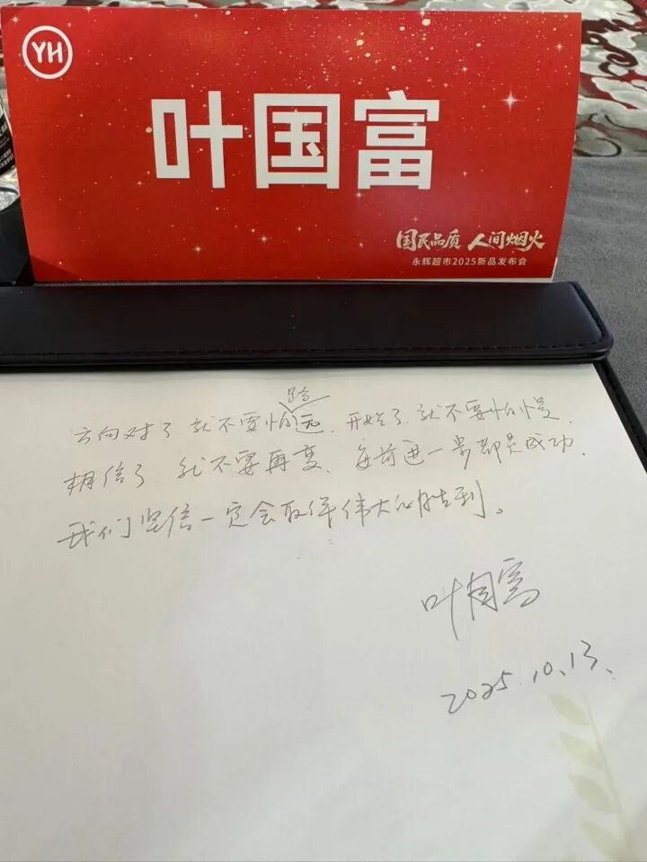 在永辉发展史上举办的第一场新品发布会上,叶国富有感而发:方向对了就不要路远,开始了,就不要怕慢,相信了,就不要再变,每前进一步都是成功,我们坚信一定会取得伟大的胜利。