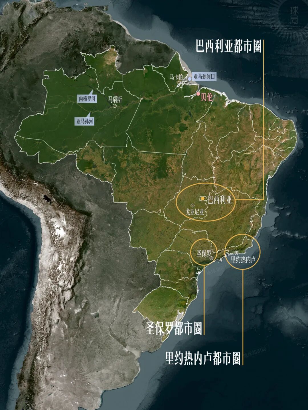 但从经济空间上看,这里和巴西的传统经济重心实在离得太远。巴西利亚到里约有900多公里,比北京到西安稍远,但贝伦距离里约则超过2400公里,相当于北京到乌鲁木齐,即便从巴西利亚过去,也有1500公里。