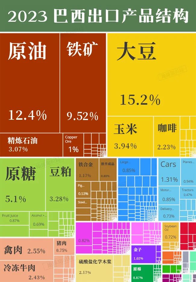 原油、矿产和农副产品占了巴西出口商品中的大头