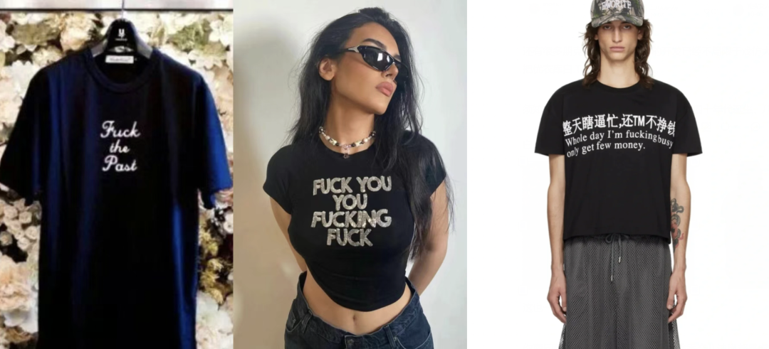 须知在T恤上印字这事儿,自打上世纪四十年代诞生、八十年代流行,就是表态、呼告、输出的一种方式。到了朋克青年这儿,少不了戏谑、自嘲、挑战公序良俗。说白了,会印上一些难登大雅之堂的文字。