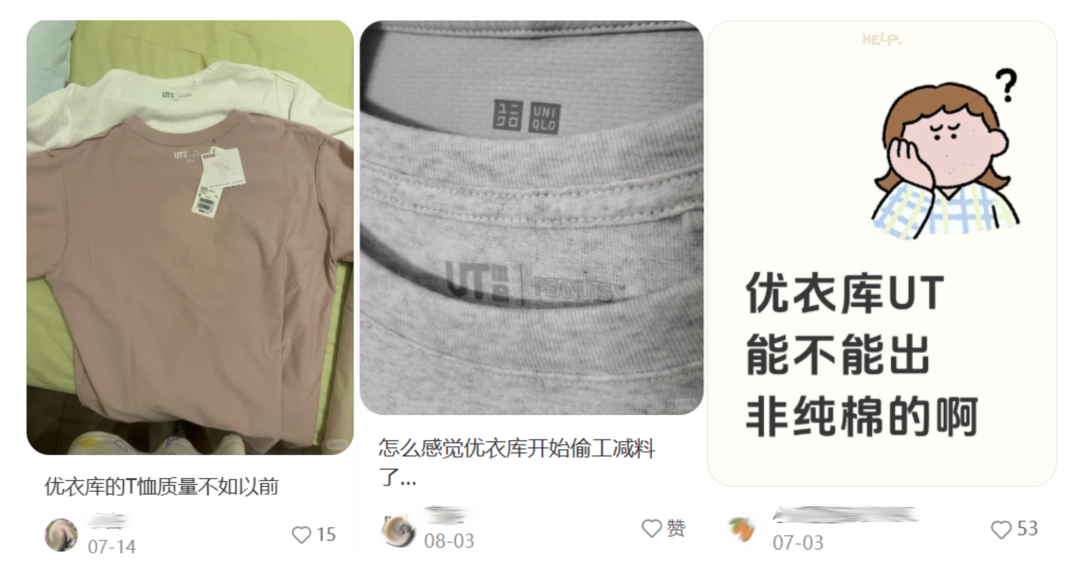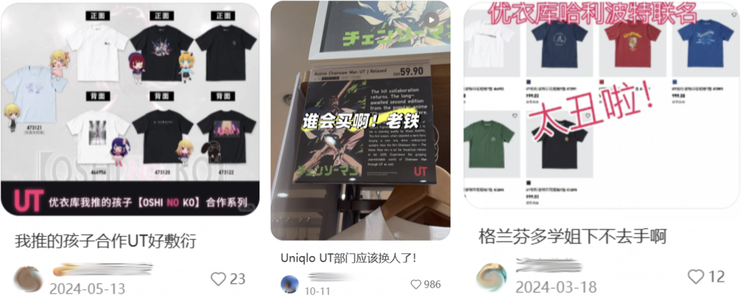 有消费者忆往昔,以前正面背面都会印图案,现在背面也没有了;有网友感叹,优衣库合作的IP都是天花板级别,结果设计一出来IP身价暴跌。
