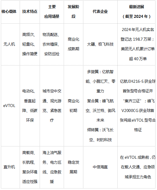 1.在核心技术领域,已形成无人机、eVTOL、直升机三大技术路线并行发展的格局