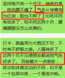 经常加班身体很差,不仅腰椎不好,气色越来越差,一点精气神都没。练过太極桩之后睡得好了,人是精神皮肤也好了好多。