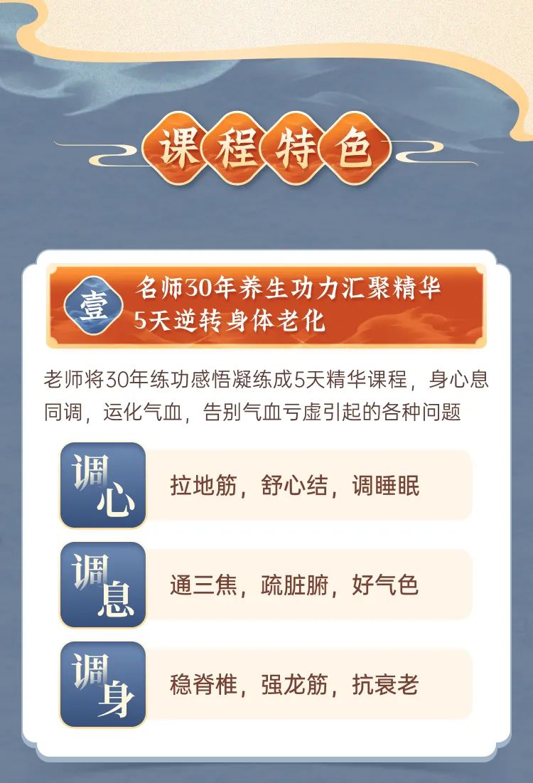 “调身”“调息”“调心”,三元合一,从内到外强健机体、冻龄养颜、延年益寿,焕发年轻光彩。