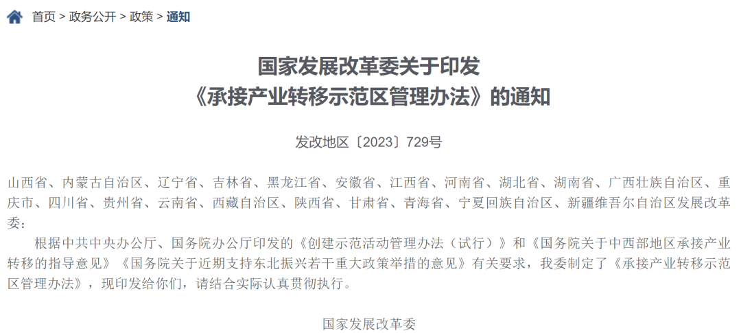 同时,还能达到对中西部和东北地区经济落后地区进行产业对口帮扶的效果。将进一步规范承接产业转移示范区建设发展,充分发挥示范区示范带动作用,推动中西部和东北地区有力有序有效承接国内外产业转移,提升产业链供应链发展和安全水平。《办法》还明确,这样的示范区,要在中西部和东北地区批复20个左右,本着成熟一个批复一个的原则,并且原则上每个省(区、市)不超过 1 个