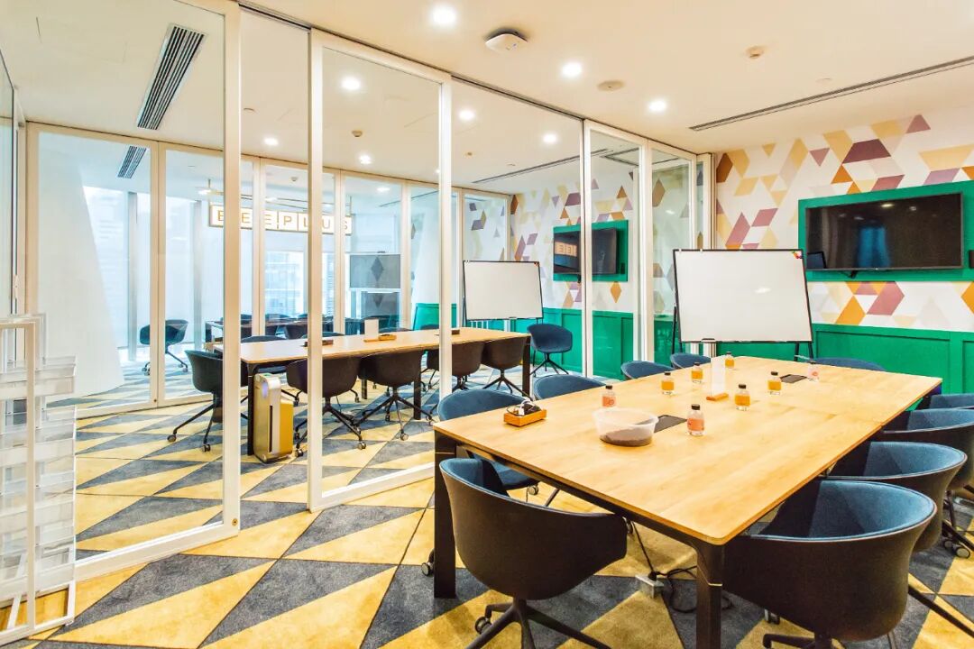 特色:以几何艺术风打造活力空间,配备专业会议平板Maxhub、幕布投影、音响话筒等全维设备支持。
