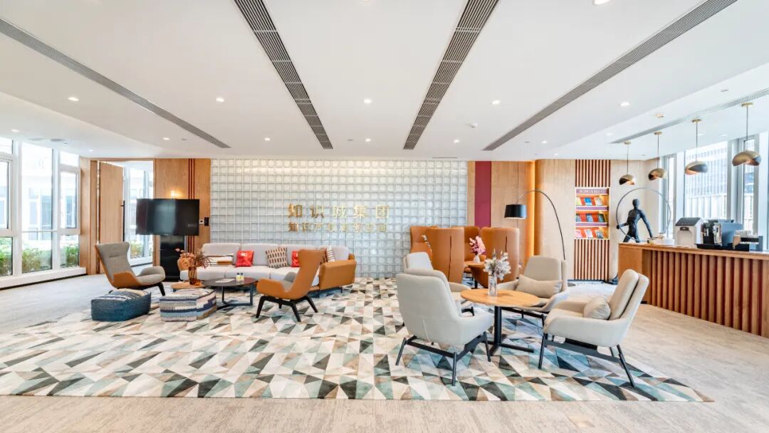 该中心位于广州知识城广场,聚合高级人才公寓、五星级酒店、会展中心、知识产权法院、知识产权博物馆等资源。中庭园林氧吧,竖立着数棵参天大树;整栋大楼将玻璃落地窗将光线恰到好处地利用,令人一见便觉灵动和治愈;随处可见的居家风情元素,搭配绿色植物,使空间内充满了浓郁鲜活,亦在商务中营造出跳脱感。