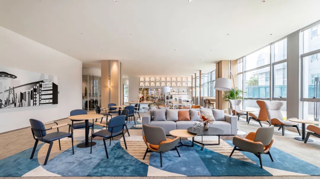 该中心隔河与澳门相望,10分钟通关即可直达澳门;拥有视野超开阔的Lobby,原木色与深蓝色烤漆面和谐搭配;360度玻璃落地窗巧妙引入澳门风光与充足光线,初见便觉灵动治愈;连接双楼层的旋转楼梯,更营造出独特且丰富的视觉体验。