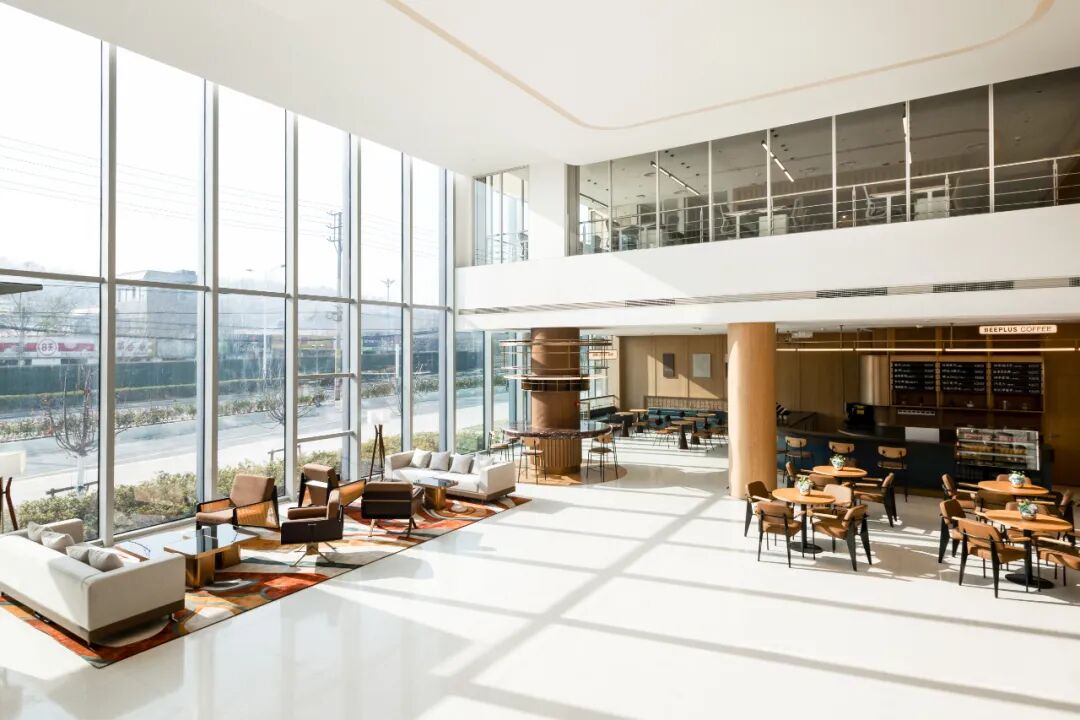 南通能达BEEPLUS创智天地区位核心优越,交通网络便捷通达。设计风格现代简约,四楼挑高的开阔中庭搭配满布绿植,自然光线通透充足,中性主色调辅以亮眼点缀色打破沉闷,空间兼具专业质感与舒适氛围,融合办公、社交、休闲等多元业态。