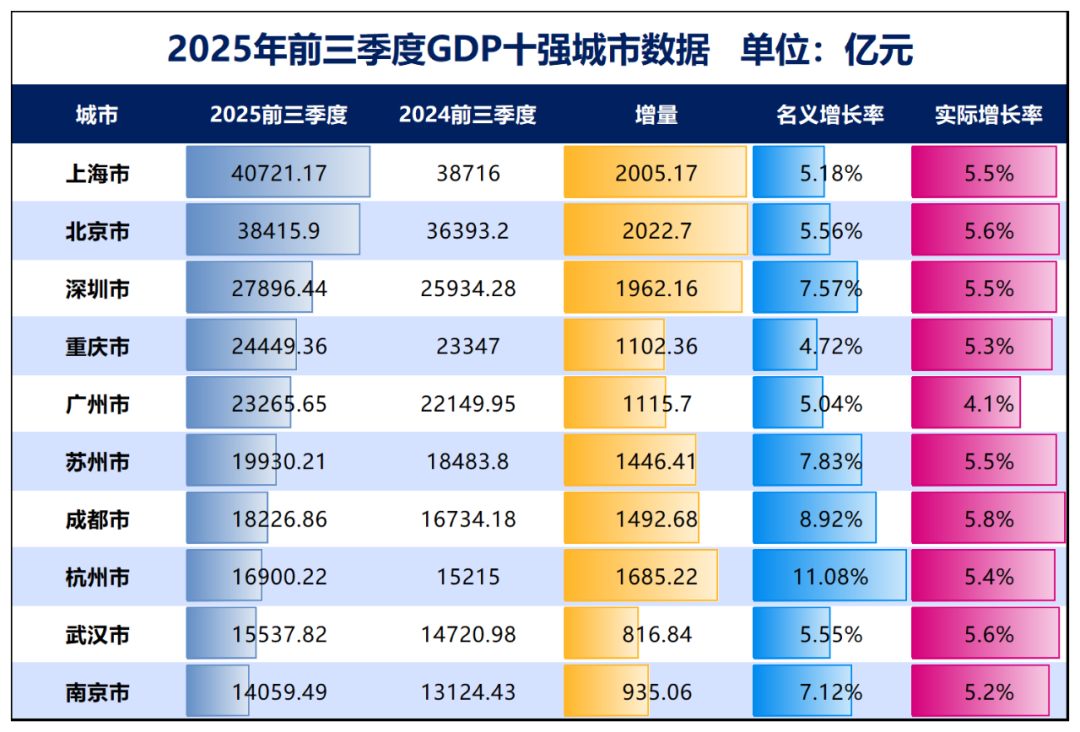 而且,南京前三季度的GDP增量935.06亿元,高于其身后追赶者宁波的848.61亿元,名义增速与实际增速均高于宁波。